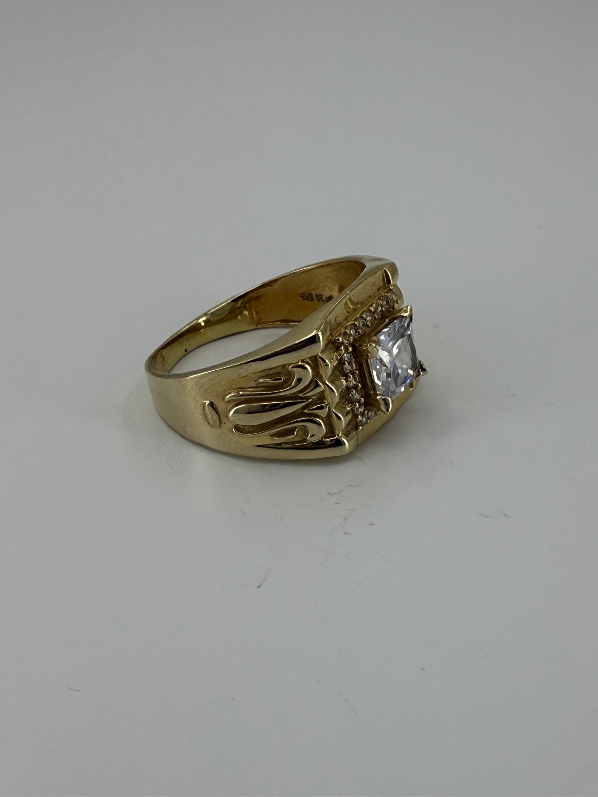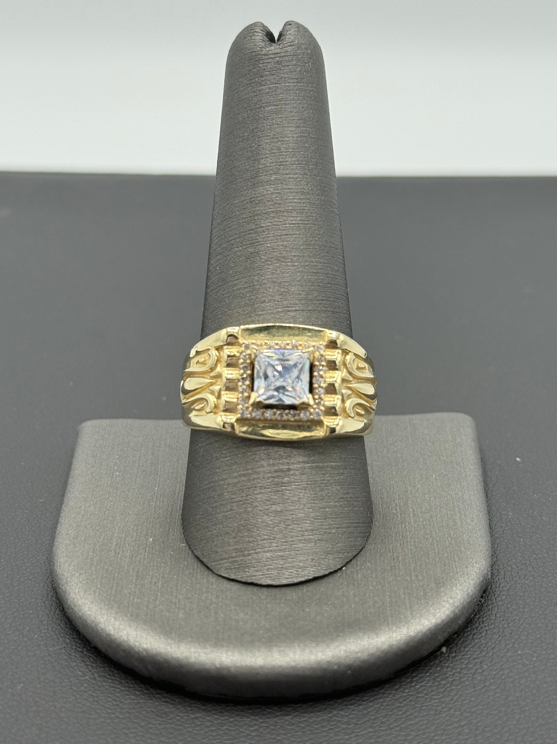 14K YELLOW GOLD MEN RING SMALL WHITE SQUARE ZIRCONIA