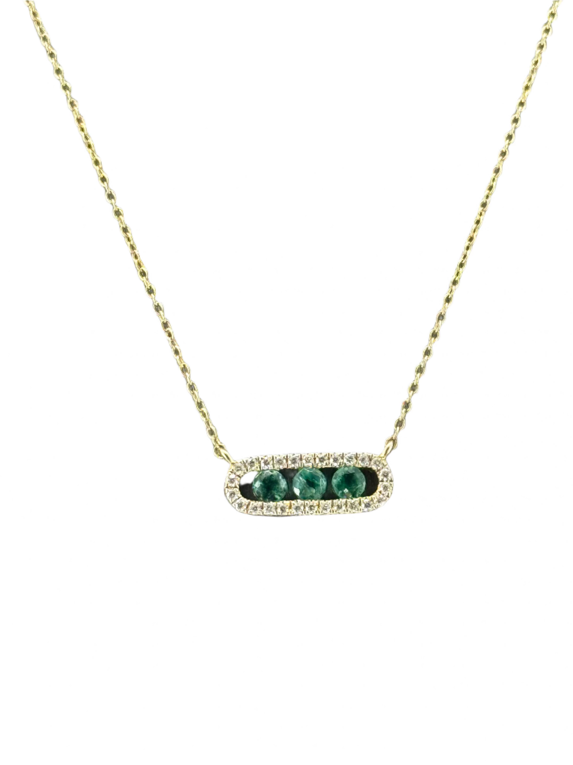 14k YELLOW GOLD NATURAL EMERALDS AND DIAMONDS LADIES NECKLACES ROUND BAR NECKLACE DIA=0.10 CS=0.25