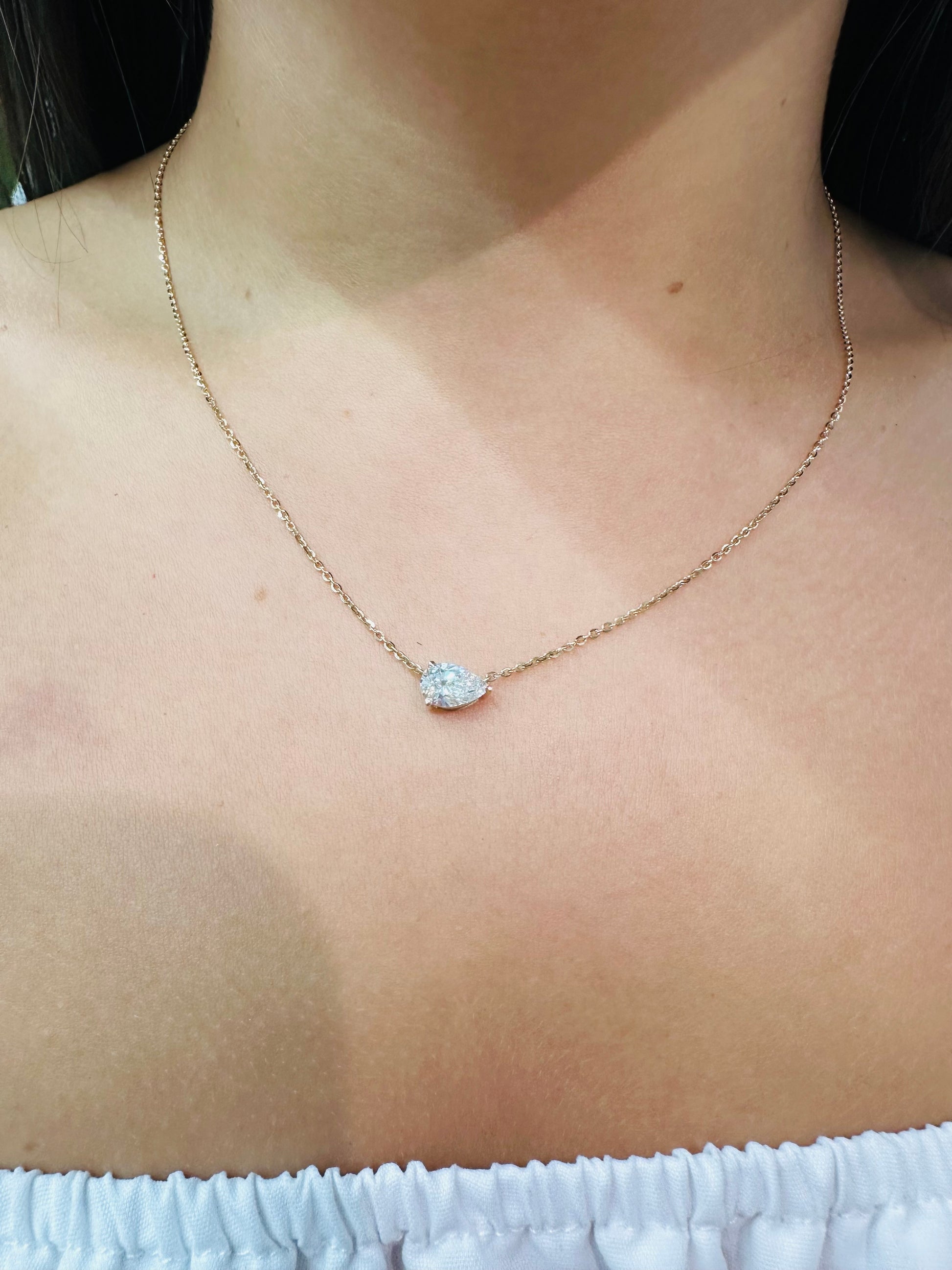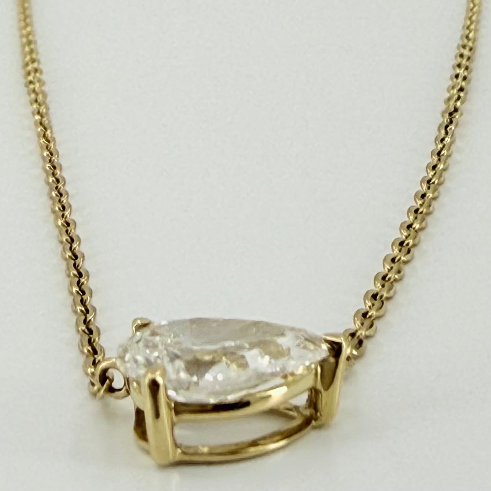 14k YGold Lab Grown Diamond Necklace East West Pear Shaped Necklace 1.03 Carat 16”18”20”